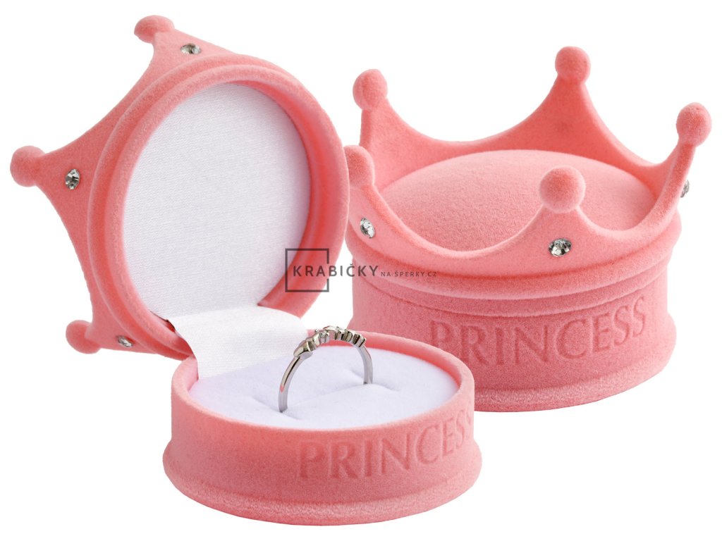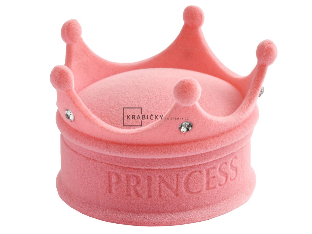 Semišová krabička na dětské náušnice nebo prstýnek - růžová korunka.