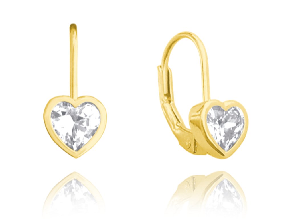 Dětské stříbrné náušnice - pozlacená srdíčka (14K) s čirými zirkony
