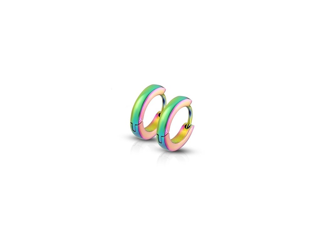 Kruhové náušnice z chirurgické oceli 316L se zajímavou duhovou úpravou.