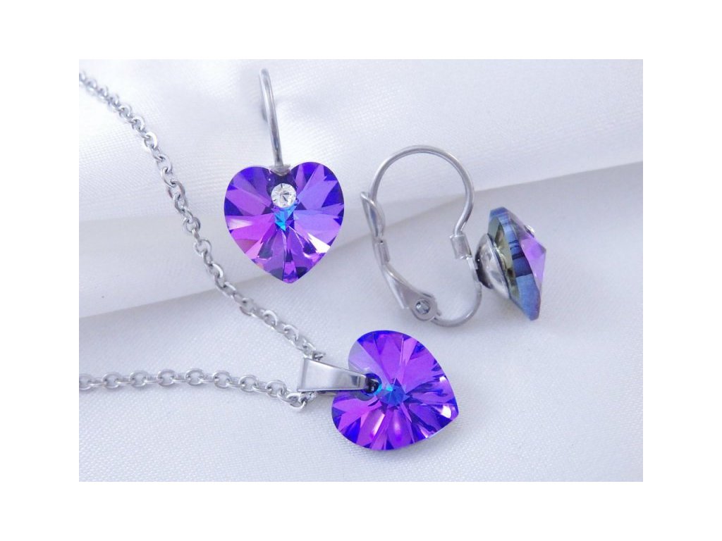Souprava šperků z chirurgické oceli - modro-fialová srdíčka Swarovski