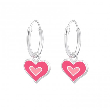 Dětské stříbrné kroužky s přívěskem - srdíčko růžovo-červené