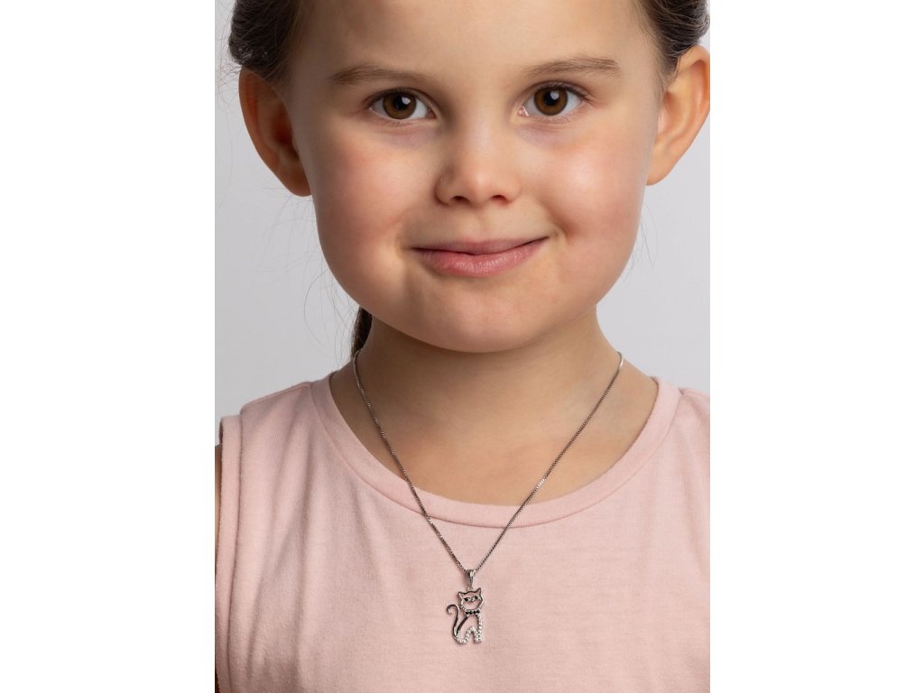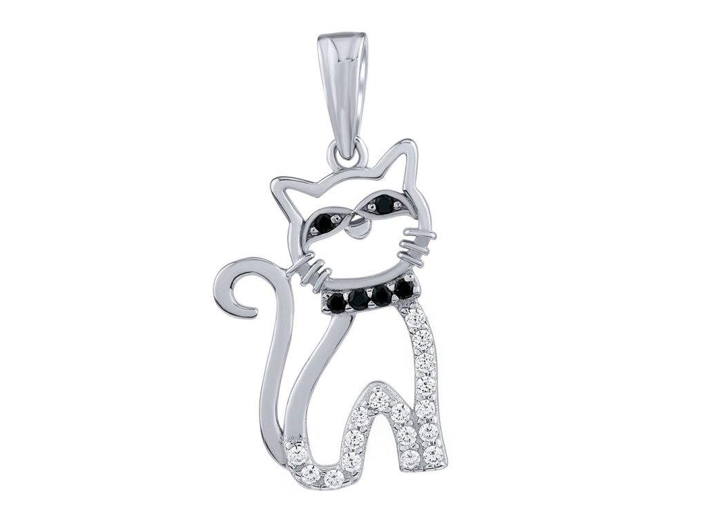 Stříbrný přívěsek - kočka s čirými a černými zirkony